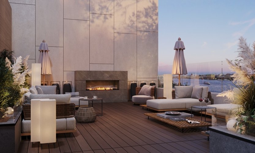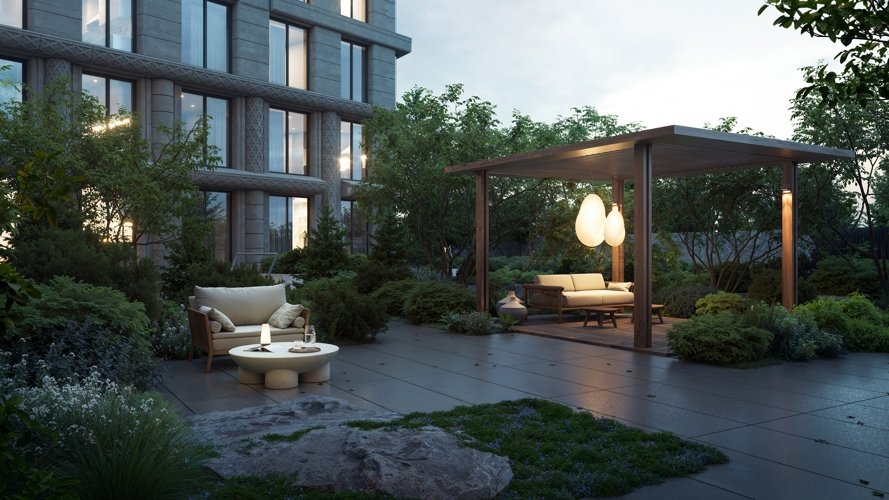 Семь тематических пространств, включая Японский сад и лаунж-зоны у воды. Благоустроенная набережная с променадом и собственный причал для яхт. Уникальный масштаб приватности в самом сердце Петербурга.