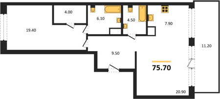 Высокие потолки (от 3 до 5,63 метров) и панорамные окна, которые добавляют помещениям света и воздуха.