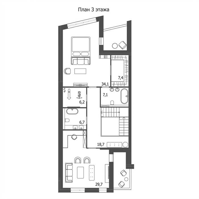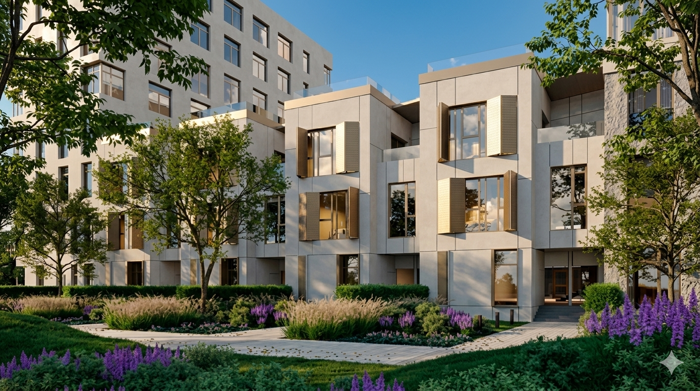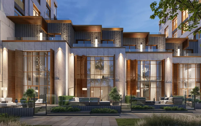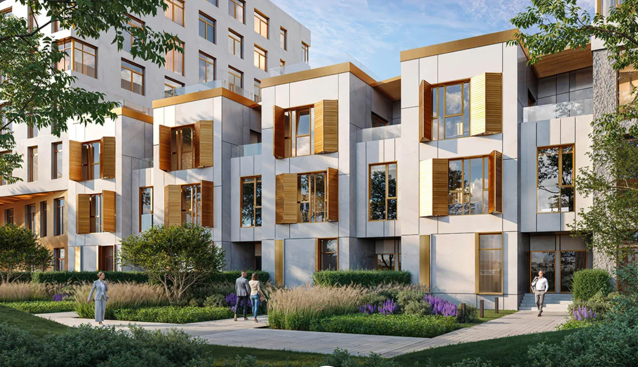 Каждая вилла имеет собственный вход со стороны Песочной набережной и выход во внутренний двор. Всего в проекте предусмотрено 8 трехэтажных домов.