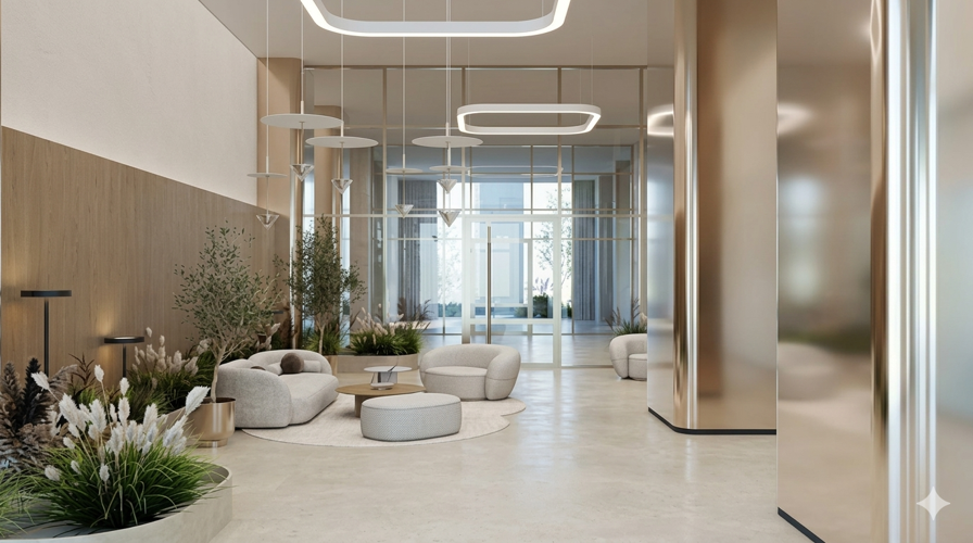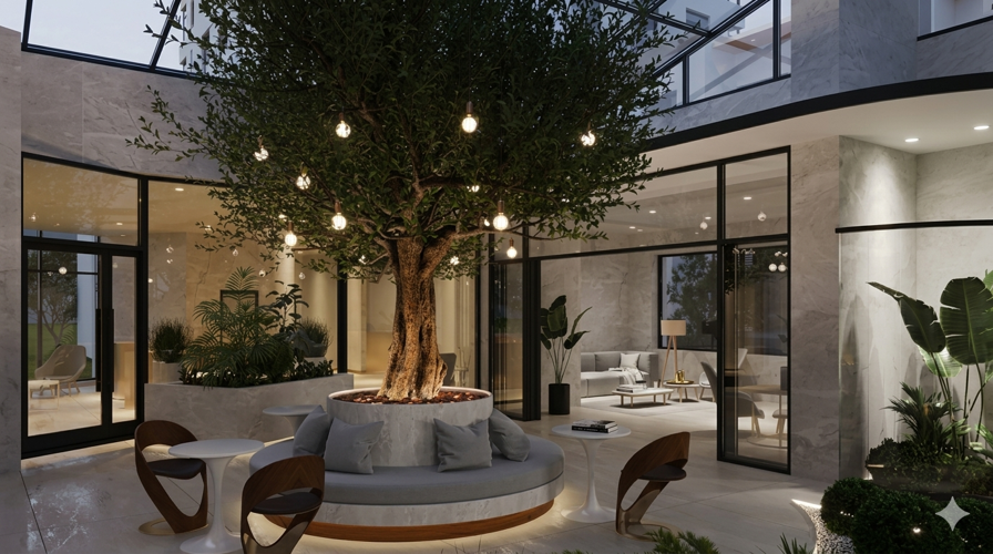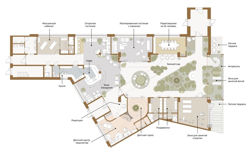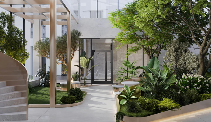Зимний сад с системой контроля климата для отдыха в любое время года, доступный только резидентам. Коворкинг, эко камин, кофейня среди живых деревьев. А так же фитнес-зал с панорамным остеклением и детский центр (с услугами присмотра и обучения).