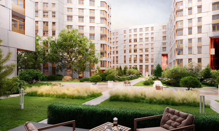 На участке площадью 40 000 кв. м расположено всего 463 квартиры, что гарантирует исключительную камерность. Для сравнения на аналогичной площади в других проектах строится 2700 квартир.