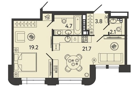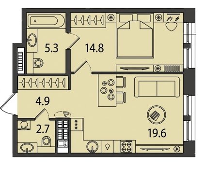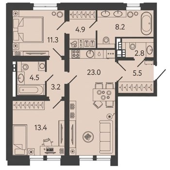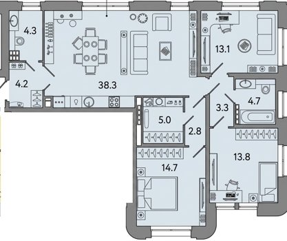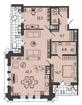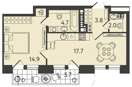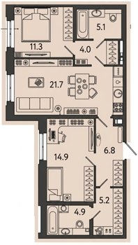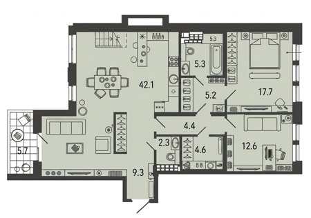 Площадь от 42.8 м2