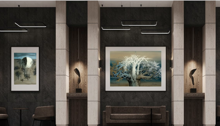 Парадное лобби превращено в частную галерею с подлинными работами признанных мастеров — художника Латифа Казбекова и скульптора Виктора Грачёва. Искусство становится частью вашего ежедневного маршрута.
